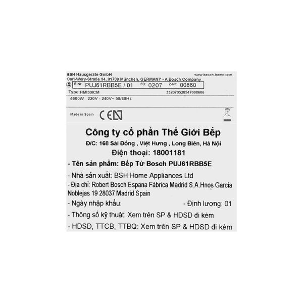 Bếp từ 3 vùng nấu Bosch PUJ61RBB5E seri 4 thương hiệu đến từ Đức được nhập khẩu nguyên chiếc ở Tây Ban Nha, nấu ăn nhanh chóng với công suất 4600W - tăng tốc độ nấu ăn nhanh chóng, mang đến nhiều tiện ích thuận tiện.