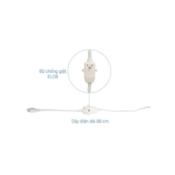 | Chế độ an toàn | Cầu dao chống rò điện ELCB Vỏ chống thấm nước IPX1 Hệ thống chống giật, chống bỏng TSS Bộ ổn định nhiệt TBST |