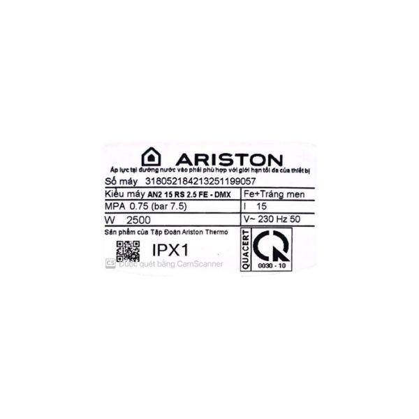 Bình nóng lạnh gián tiếp Ariston 15 lít 2500W AN2 15 RS 2.5 FE với dung tích 15 lít cùng với thiết kế màu trắng trang nhã, hòa hợp với mọi không gian phòng tắm cùng với các tính năng mới như thanh đun 100% đồng, chống giật ELCB, hệ thống kiểm soát nhiệt TSS,... Không chỉ đảm bảo nguồn nước sạch sẽ mà còn an toàn sức khỏe người tiêu dùng khi sử dụng hằng ngày.