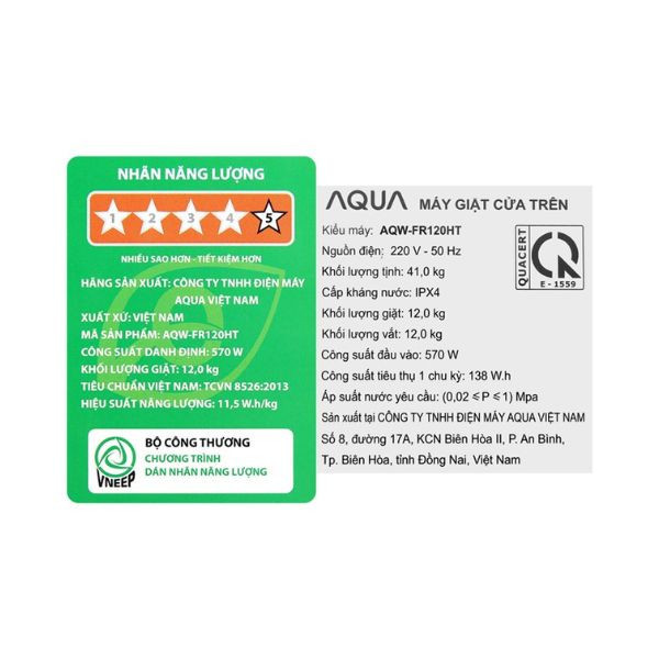- Kiểu dáng: Máy giặt Aqua cửa trên - lồng đứng.
