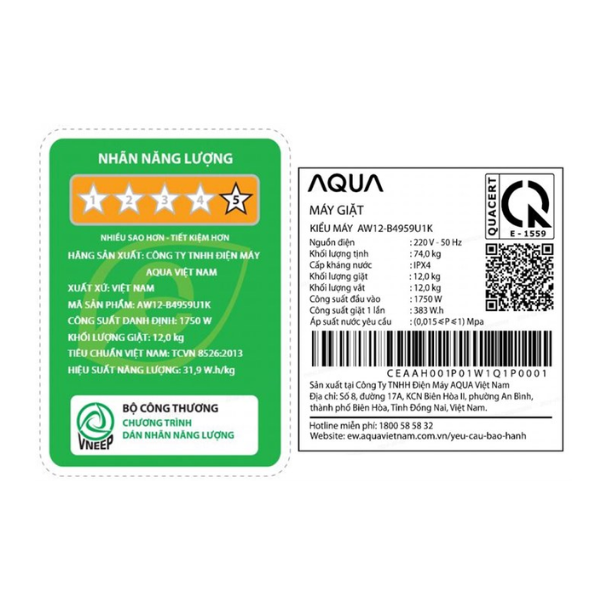 Máy giặt Aqua Inverter 12 kg AW12-B4959U1K(B) mang đến giải pháp giặt giũ tiện lợi với sự kết hợp giữa công nghệ hiện đại và thiết kế tinh tế. Không chỉ giúp làm sạch quần áo hiệu quả, sản phẩm còn tối ưu thời gian nhờ khả năng kết nối Wi-Fi thông minh, cho phép bạn điều khiển máy từ xa dễ dàng. Đây là lựa chọn lý tưởng cho gia đình đông thành viên hoặc người bận rộn.