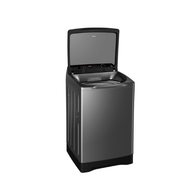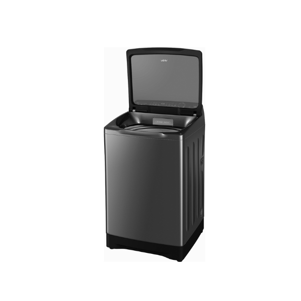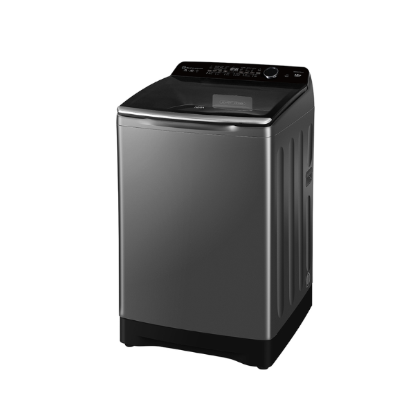 Máy giặt AQUA AQW-DR150UGT.PS thuộc dòng cửa trên với thiết kế chắc chắn, tông màu đen xám sang trọng, dễ dàng phù hợp với nhiều không gian nội thất.