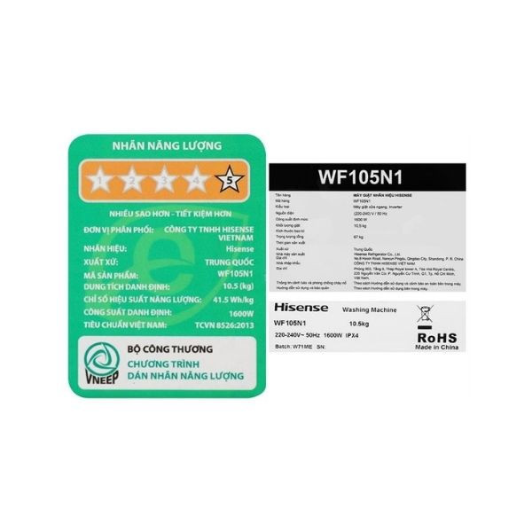 Máy giặt Hisense Inverter 10.5 kg WF105N1 không chỉ mang đến hiệu quả giặt sạch mạnh mẽ mà còn giúp bạn tiết kiệm thời gian, điện năng và bảo vệ sức khỏe cho cả gia đình. Thiết kế hiện đại, công nghệ hơi nước diệt khuẩn và các tiện ích thông minh sẽ nâng tầm trải nghiệm giặt giũ hằng ngày của bạn.
