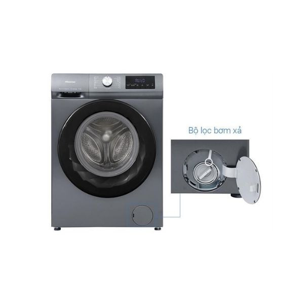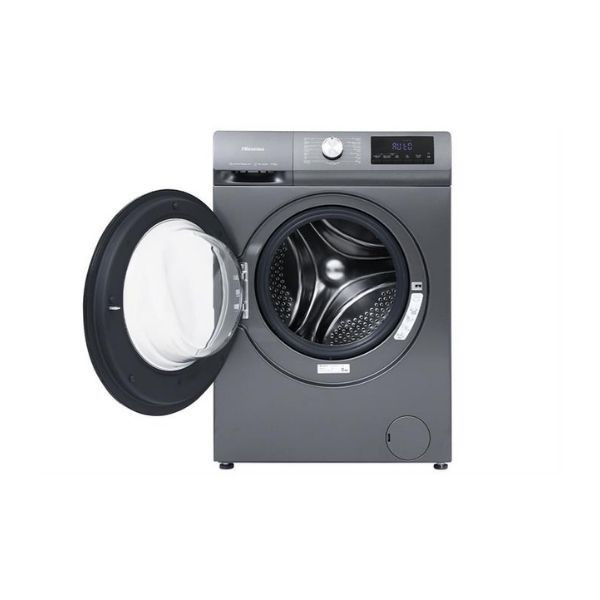 - Máy giặt Hisense có dạng cửa trước - lồng ngang, đi cùng gam màu xám titan sang trọng, hài hòa với nhiều kiểu không gian nội thất.