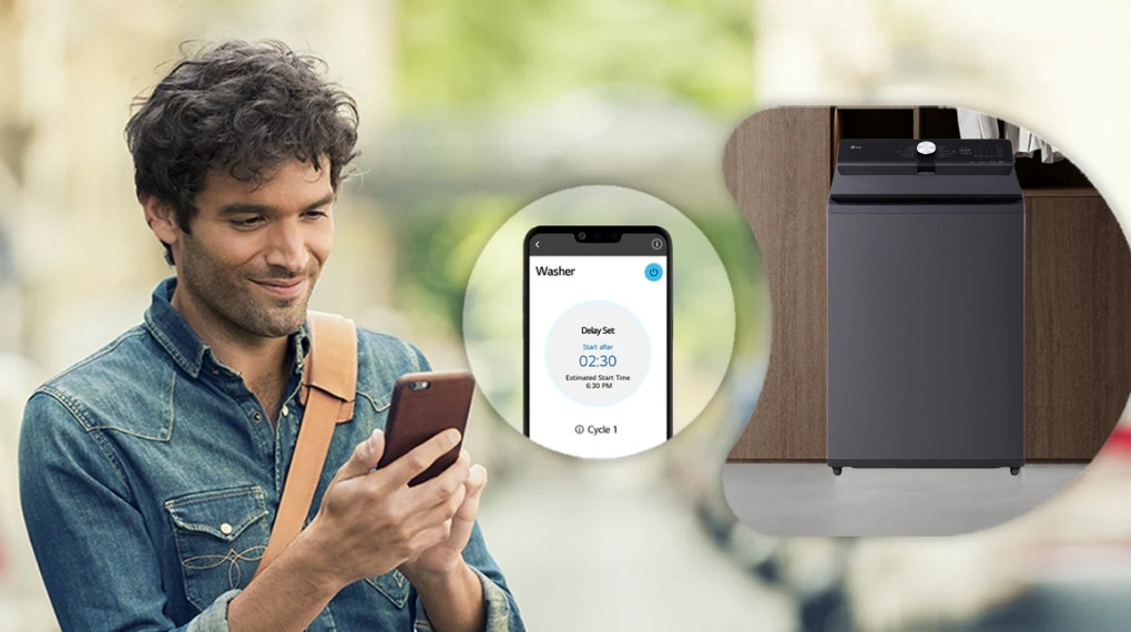 Kết nối Wi-Fi và điều khiển từ xa qua ứng dụng LG ThinQ, giúp theo dõi, khởi động hoặc tải thêm chương trình giặt một cách tiện lợi.