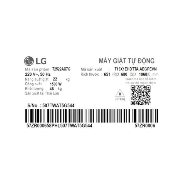 | Tiện ích | Tự động phân bổ nước giặt Khóa trẻ em Hẹn giờ giặt Chỉnh mức độ nước Khóa nắp Điều chỉnh âm lượng Tăng cường độ giặt Kết nối wifi và điều khiển từ xa qua ứng dụng LG ThinQ Xả tăng cường |