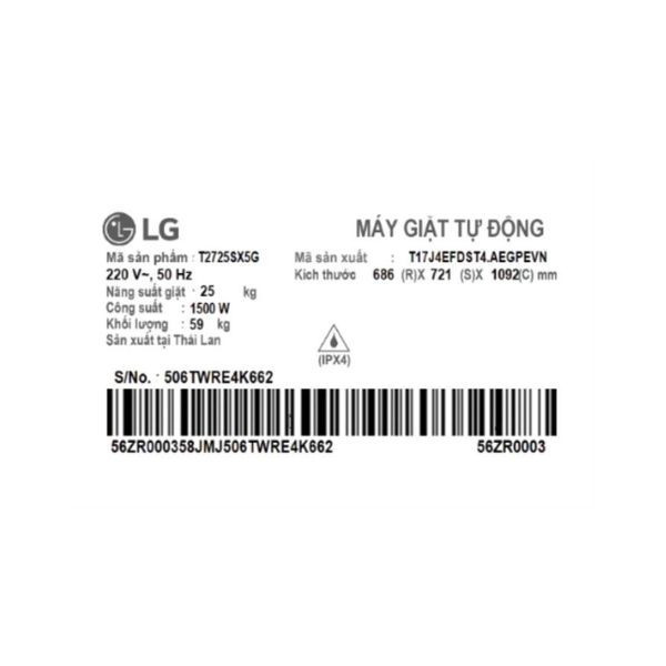 - Máy giặt LG DD Inverter 25kg T2725SX5G Lồng đứng là dạng máy giặt lồng đứng - cửa trên thiết kế tinh tế, với màu đen chủ đạo thích hợp với những gian bếp cá tính.
