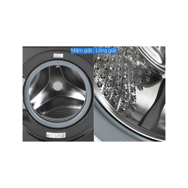 - Lồng giặt được làm từ chất liệu thép không gỉ có độ bền cao, chống ăn mòn và hạn chế bám bẩn vào thành lồng giặt cũng như quần áo.