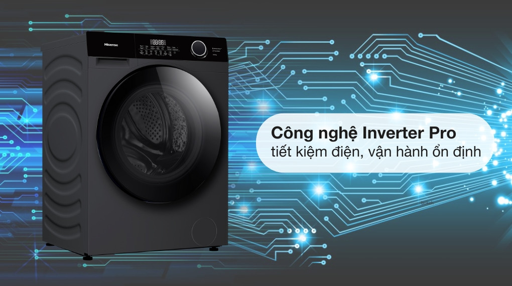 - Công nghệ Inverter Pro được tích hợp giúp tối ưu hóa tốc độ quay của máy nén trở nên ổn định, tiết kiệm điện năng mà vẫn đảm bảo hiệu suất giặt sấy cao. Nhờ đó, máy hoạt động ổn định, bền bỉ theo thời gian.