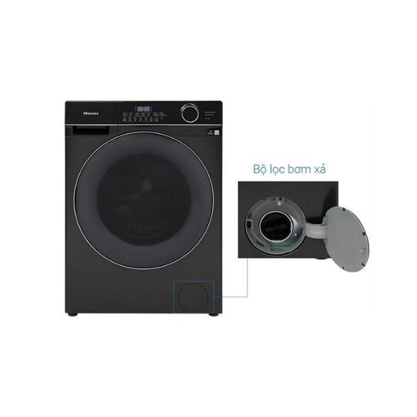 - Máy giặt Hisense sở hữu thiết kế lồng ngang hiện đại, mang đến sự tiện lợi trong việc bỏ vào và lấy quần áo. Thiết kế này còn giúp tiết kiệm không gian, phù hợp với nhiều không gian nội thất khác nhau.