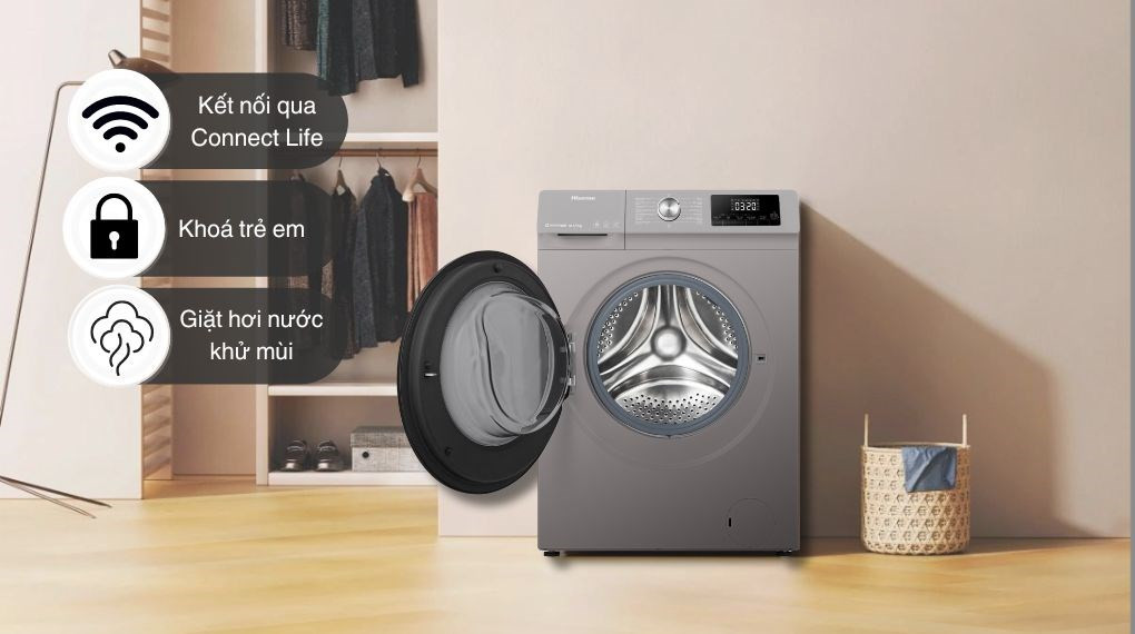 | Tiện ích | Lưu chương trình yêu thích Kết nối Wifi Khóa trẻ em Hẹn giờ giặt kết thúc Tạm ngưng và cho thêm đồ giặt Tự động chẩn đoán sự cố Ghi nhớ chương trình giặt Cho phép điều khiển từ xa qua ứng dụng Connect Life |