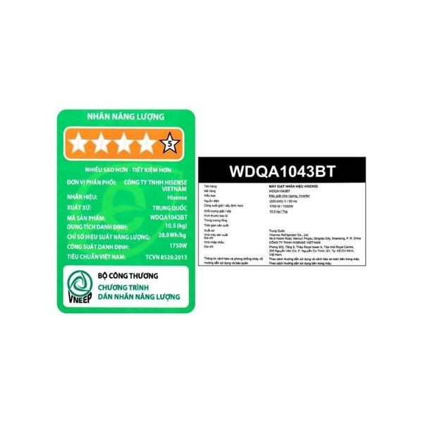 - Nhãn năng lượng chuẩn 5 sao, hiệu suất năng lượng là 28 Wh/kg.