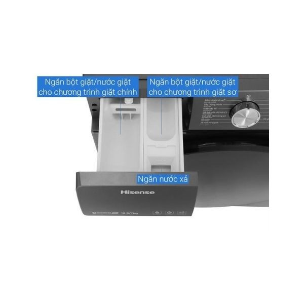 - Đối với nhu cầu giặt quần áo, máy giặt Hisense có thể xử lí khối lượng giặt 10.5 kg và khối lượng sấy 7 kg phù hợp với gia đình có từ 7 thành viên trở lên.