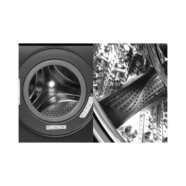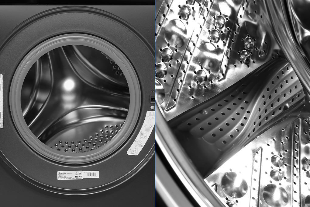 Vào bên trong, lồng giặt được làm từ thép không gỉ có độ dày cao, chịu được tác động của hóa chất giặt tẩy và môi trường ẩm ướt, hạn chế hao mòn, nhờ đó duy trì tuổi thọ và giữ được chất lượng cho mẻ giặt trong thời gian dài.
