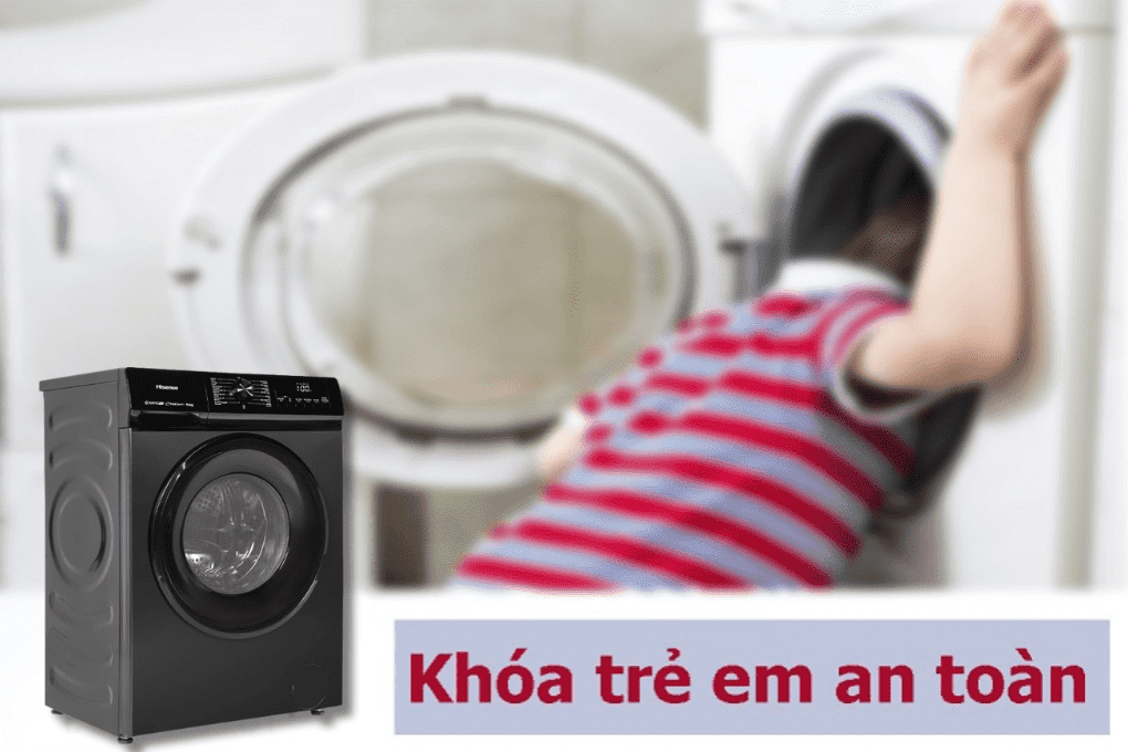 Ngoài ra, sản phẩm còn sở hữu nhiều tiện ích hữu dụng như chức năng tạm dừng để thêm quần áo còn sót, chế độ tự chẩn đoán sự cố giúp người dùng dễ dàng xử lý, và hẹn giờ để kết thúc giặt đúng thời điểm mong muốn. Tính năng khóa trẻ em cũng được tích hợp nhằm ngăn trẻ nhỏ nghịch bảng điều khiển hoặc vô tình rơi vào lồng giặt, tăng mức độ an toàn khi sử dụng.
