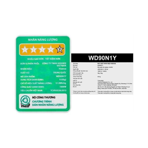 Máy giặt sấy Hisense Inverter WD90N1Y có khả năng giặt 9 kg và sấy 6 kg, phù hợp với nhu cầu của gia đình 3–5 người. Kiểu dáng cửa trước giúp tiết kiệm lượng nước sử dụng và giảm hiện tượng quần áo bị xoắn rối. Máy tích hợp nhiều chế độ, từ giặt diệt khuẩn cho đồ trẻ em, đồ lót đến các chương trình giặt nhanh dành cho những ngày bận rộn, vẫn giữ được chất lượng sợi vải sau mỗi lần giặt.
