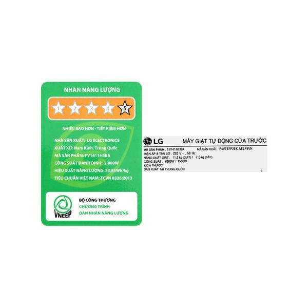 - Nhãn năng lượng đạt chuẩn 5 sao, hiệu suất sử dụng điện là 23.85 Wh/kg.