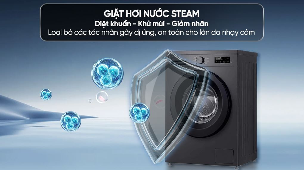 Công nghệ hơi nước Steam hỗ trợ loại bỏ tác nhân gây dị ứng, vi khuẩn và bụi mịn, góp phần bảo vệ sức khỏe, đặc biệt phù hợp cho trẻ nhỏ và người có làn da nhạy cảm. Tính năng giặt nước nóng giúp xử lý hiệu quả các vết bẩn cứng đầu, đồng thời khử khuẩn sâu, mang đến sự an tâm hơn trong từng mẻ giặt.