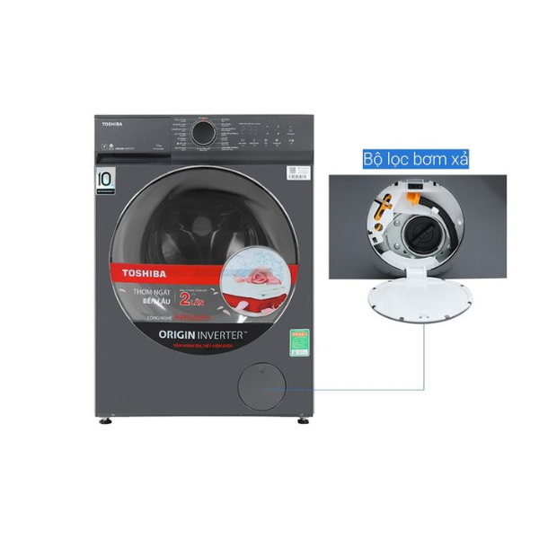 Máy giặt sấy Toshiba được trang bị hàng loạt công nghệ giặt tiên tiến, mang lại hiệu quả làm sạch vượt trội: Great Steam sử dụng hơi nước nhiệt độ cao giúp diệt khuẩn, khử mùi và làm mềm sợi vải, đồng thời giảm nhăn hiệu quả sau khi giặt. Công nghệ Nano UFB tạo ra các bọt khí siêu nhỏ giúp thẩm thấu sâu vào từng sợi vải, đánh bay vết bẩn cứng đầu mà không làm hư tổn chất liệu. Chế độ giặt nước nóng hỗ trợ loại bỏ dầu mỡ, vi khuẩn và tăng hiệu quả hòa tan bột giặt. Color Alive giúp giữ màu quần áo bền đẹp, hạn chế phai màu sau nhiều lần giặt. Aroma+ tối ưu quá trình xả, giúp quần áo mềm mại và lưu hương lâu hơn.