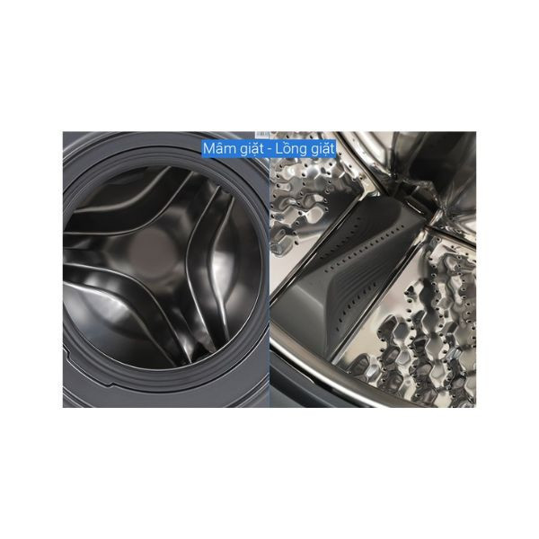 - Lồng giặt từ thép không gỉ có độ bóng cao, hạn chế mảng bám và cặn bột giặt, nâng cao hiệu quả giặt giũ.