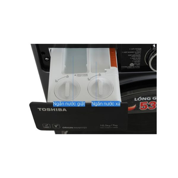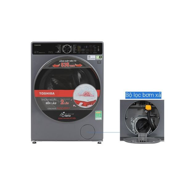 | Tiện ích | Vệ sinh lồng giặt Vòng đệm cửa kháng khuẩn Van sử dụng mực nước thấp Tự phân bổ nước giặt và nước xả SenseDose Thêm đồ trong khi giặt Kết nối Wifi và điều khiển từ xa qua ứng dụng TSmartLife Khóa trẻ em Hẹn giờ giặt kết thúc Giặt hơi nước Chỉnh số vòng vắt Chỉnh nhiệt độ nước Vòi phun 360° rửa sạch mặt trong cửa và vòng đệm cửa |