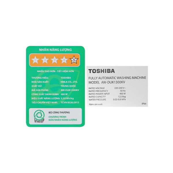 - Máy giặt Toshiba có khối lượng giặt là 12 kg phù hợp với nhu cầu giặt giũ của gia đình từ 7 thành viên trở lên.