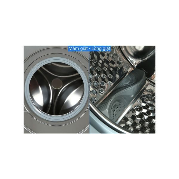 - Lồng giặt bằng thép không gỉ có độ bền cao, giúp tăng hiệu quả giặt sạch và giảm ma sát với quần áo.