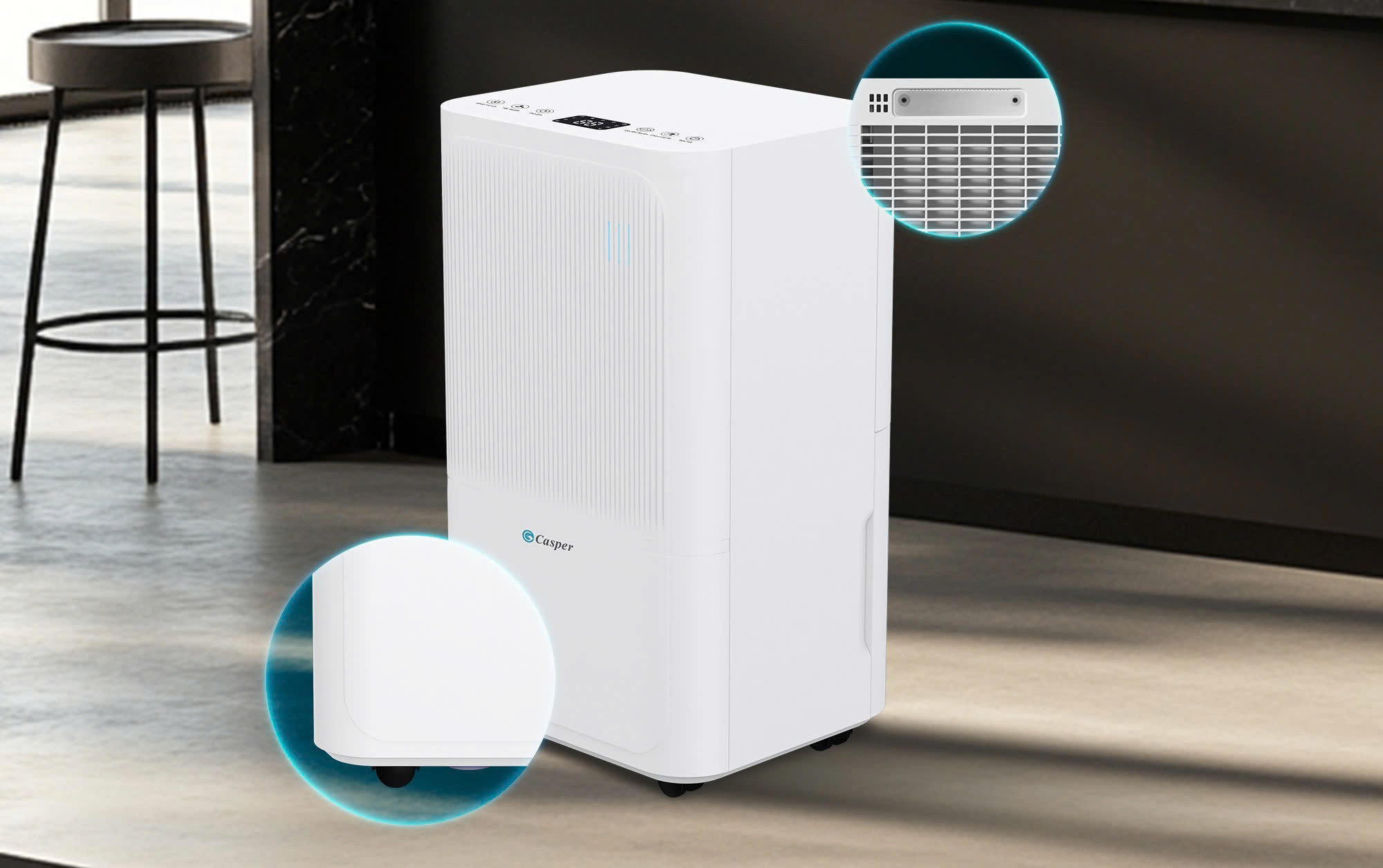 Chức năng hút ẩm liên tục vận hành không phụ thuộc vào độ ẩm môi trường, kết hợp công suất hút ẩm mạnh mẽ lên tới 12L/ngày*, giúp nhanh chóng loại bỏ hơi ẩm dư thừa, mang lại không gian khô ráo rõ rệt ngay cả trong những ngày nồm ẩm cao điểm hoặc các phòng kín lâu ngày.