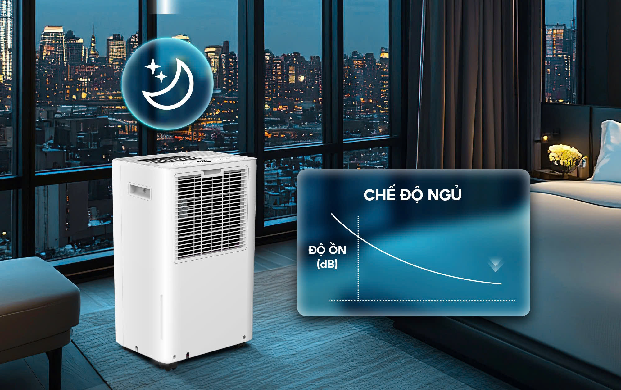 Khi chế độ ngủ được kích hoạt, máy sẽ tự động giảm độ sáng màn hình và điều chỉnh tốc độ quạt, phù hợp sử dụng vào ban đêm. Nhờ đó, người dùng có thể tận hưởng giấc ngủ trọn vẹn, thoải mái mà vẫn duy trì không gian khô ráo, dễ chịu.