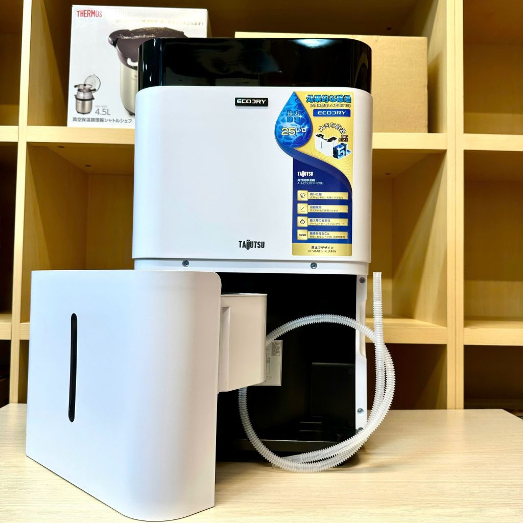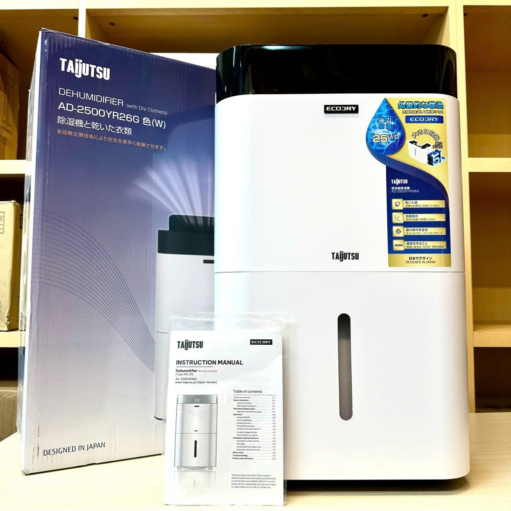Máy hút ẩm Taijutsu AD-2500YR26G-W không chỉ hút ẩm mà còn tích hợp tính năng sấy khô quần áo nhanh chóng, loại bỏ hơi ẩm trong 2-3 giờ, và ứng dụng công nghệ Plasmacluster ion để khử khuẩn, khử mùi hiệu quả.
