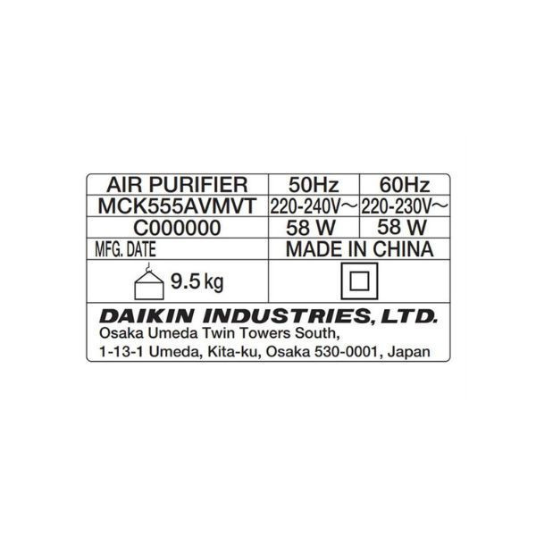 | Tiện ích | Tự khởi động lại khi mất điện Bình chứa nước tạo ẩm có thể tháo rời Tạo độ ẩm không khí Hút gió 3 hướng Điều khiển bằng remote Bánh xe di chuyển Đèn báo chất lượng không khí Đèn báo hoạt động Khoá bảng điều khiển |