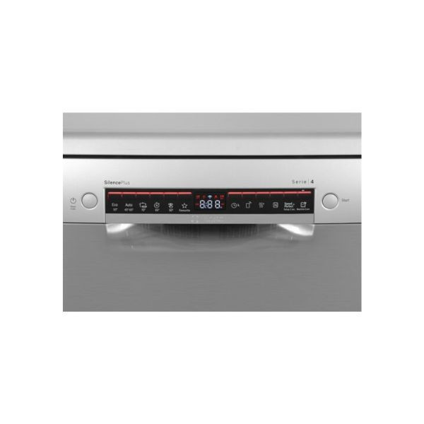 Bảng điều khiển của máy rửa chén Bosch SMS4HMI07E được thiết kế dạng nút nhấn dễ thao tác, kèm với màn hình hiển thị được bố trí ở giữa bảng điều khiển, giúp bạn quan sát tiện lợi mỗi khi thao tác.