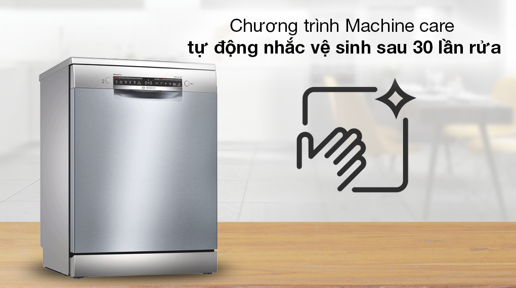 Máy rửa chén độc lập Bosch SMS4HCI48E – Hỗ trợ chương trình Machine care tự động nhắc vệ sinh sau 30 lần rửa