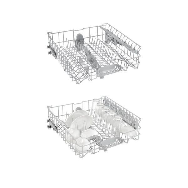 – Sắp xếp chén dĩa úp xuống, dàn đều trên khay chứa, những món đồ nặng như xoong, nồi,… nên đặt trên khay dưới cùng, đặt nghiêng, chiếm 50% diện tích không bị món đồ khác che chắn để đảm bảo hiệu suất rửa.