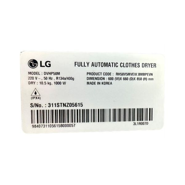 - Vỏ máy LG 10.5 kg DVHP50M được làm từ chất liệu kim loại sơn tĩnh điện, cùng lồng sấy làm bằng thép không gỉ mang lại tính thẩm mỹ cao, hạn chế các mảng bám vào lồng sấy.