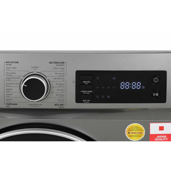 | Tiện ích: | Âm báo khi kết thúc chu trình sấy Khóa trẻ em Hẹn giờ hoàn thành Điều chỉnh mức độ Đèn chiếu sáng lồng sấy Sấy chống nhăn Điều chỉnh thời gian Ghi nhớ chương trình sấy Chế độ khử khuẩn |