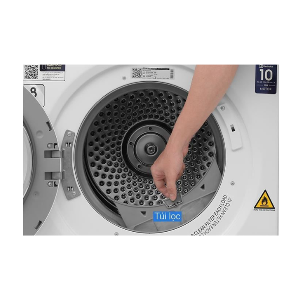 Máy sấy được thiết kế với gam màu trắng thanh lịch, dễ dàng phù hợp với nhiều không gian nội thất từ căn hộ đến nhà phố.