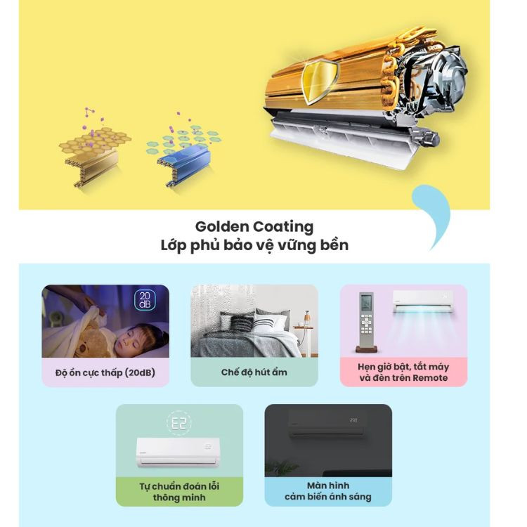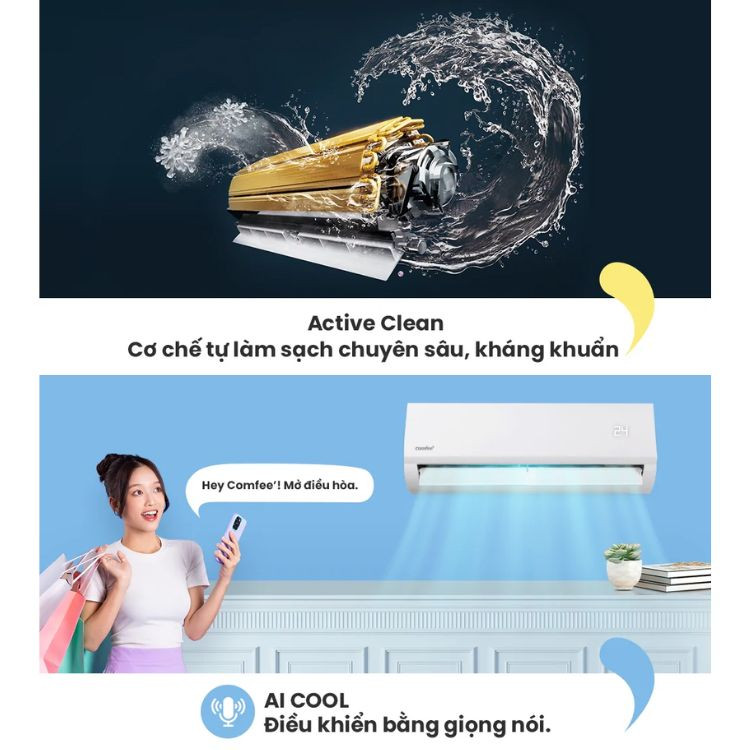 Hoạt động êm ái, bền bỉ, nhờ công nghệ Golden Coating - Lớp phủ chống ăn mòn dàn lạnhvà công nghệ tự làm sạch dàn lạnh giúp bạn tiết kiệm chi phí vệ sinh điều hoà hàng năm một cách tốt nhất. Đã là một modell của điều hoà thông minh, nếu điều hoà cơ có khả năng điều khiển từ xa trên điện thoại, thì ở dòng điều hoà inverter model CFS-10VAF này còn được trang bị thêm cả điều khiển bằng giọng nói nữa. Thế nào là sự tiện nghi, Comfee trả lời cho bạn biết. Không những không cần sử dụng điều khiển, mà giờ cũng không cần sử dụng ay để bấm nút nữa, bạn chỉ cần lên tiếng, điều hoà Comfee sẽ giúp bạn thực hiện nguyện vọng - như Thần Đèn trong truyện cổ tích vậy.