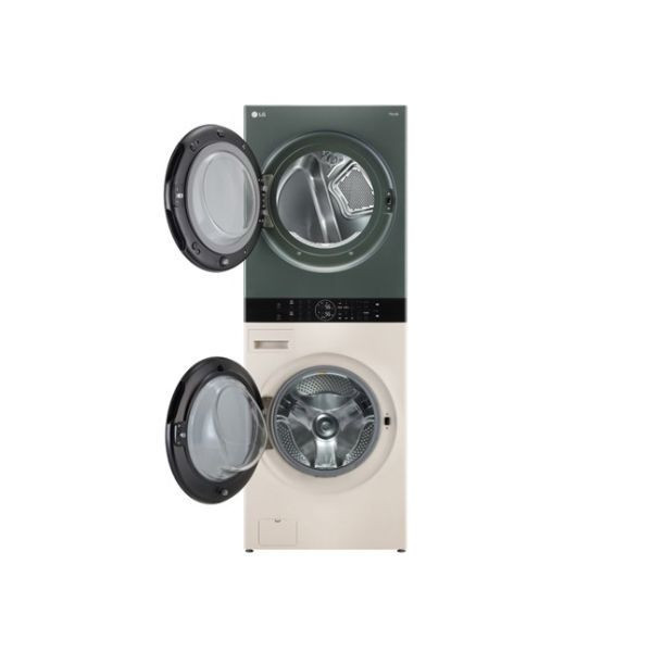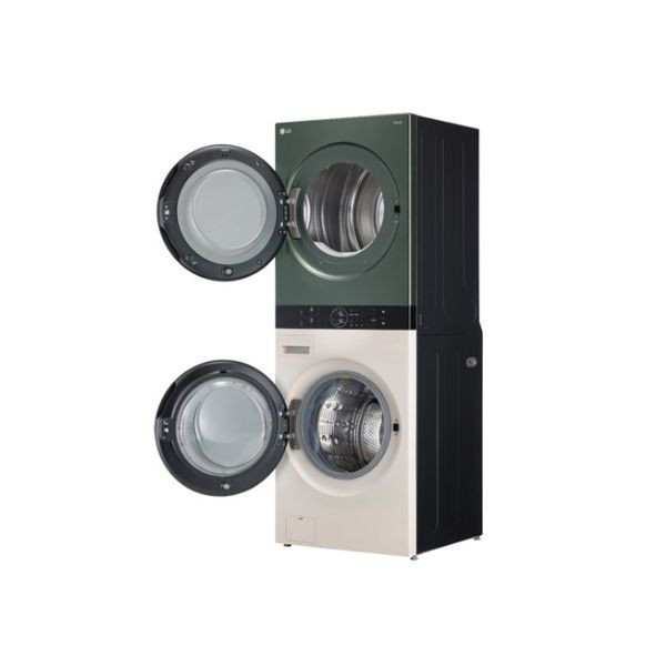 - Bộ đôi máy giặt - sấy hiện đại và tiện dụng có thiết kế đẹp mắt, tích hợp máy giặt và sấy xếp chồng lên nhau cùng nhau tạo nên 1 tháp giặt hiện đại, với gam màu trang nhã, thanh lịch.