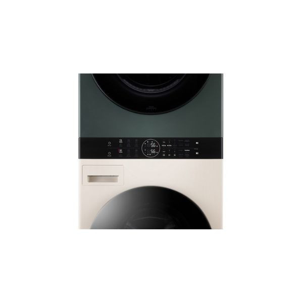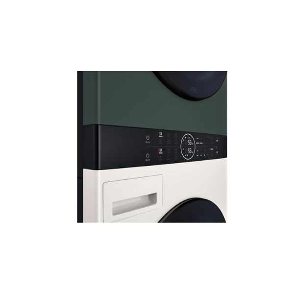 - Bảng điều khiển nằm ở vị trí trung tâm của tháp máy giặt sấy giúp người dùng thuận tiện tuỳ chỉnh các thông số giặt và sấy với màn hình hiển thị sắc nét.
