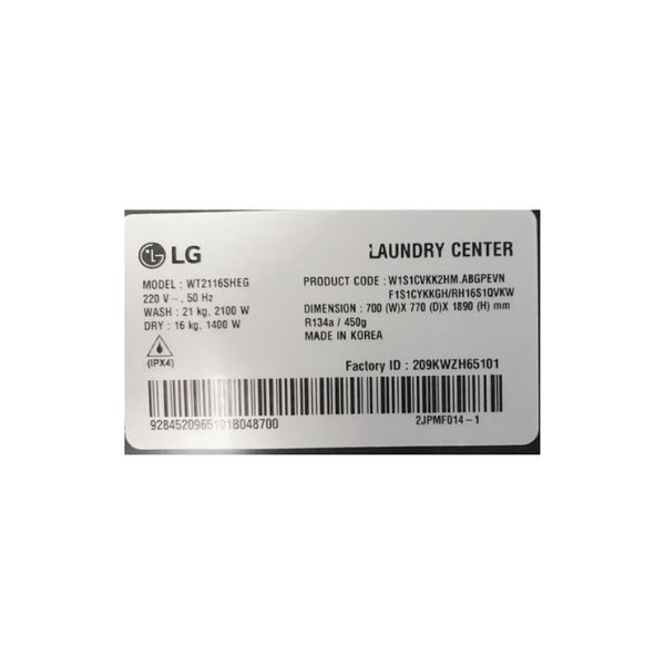 | Khối lượng giặt | Giặt 21 Kg - Sấy 16 Kg |