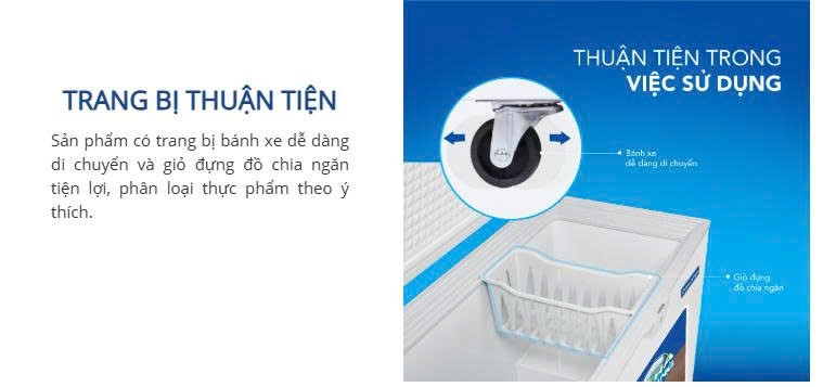 Tiện ích | - Nút điều chỉnh nhiệt độ bên ngoài tủ - Khoá cửa tủ - Giỏ đựng đồ - Lỗ thoát nước - Bánh xe |