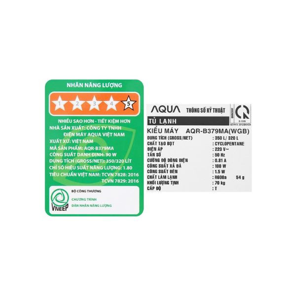 | Công suất tiêu thụ công bố theo TCVN | 390.01 kWh/năm |