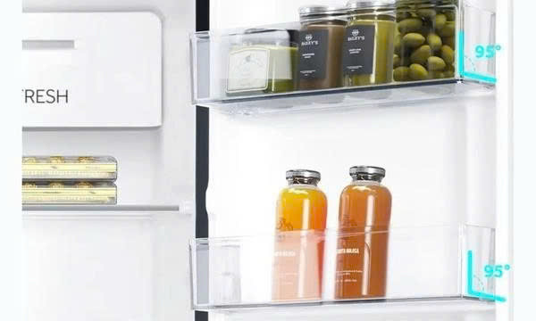Tủ lạnh Aqua tăng cường trải nghiệm tiện nghi cho người dùng với thiết kế khay chứa 95° mới hạn chế tình trạng rơi, đổ chai lọ khi mở cửa với lực mạnh. Thiết kế này được nhiều người dùng yêu thích vì chúng giải quyết được vấn đề rơi vỡ khiến nhiều người "đau đầu" bấy lâu nay.
