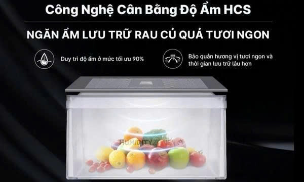 Bảo quản tốt rau quả với ngăn HCS cho khả năng duy trì độ ẩm cân bằng ở mức 90% - mức ẩm lý tưởng để bảo quản rau củ.
