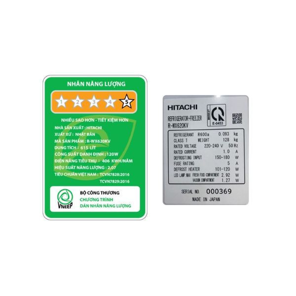 | Tên sản phẩm | Tủ lạnh cao cấp Hitachi Inverter 615 lít R-WX620KV(XK) |