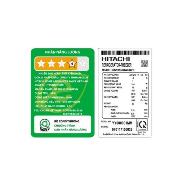 | Dung tích sử dung | 529 lít - Trên 5 người |