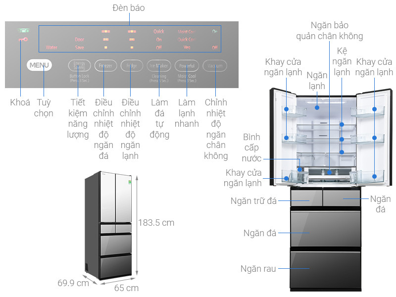 | Tiện ích | Làm lạnh nhanh Có khóa Bảng điều khiển cảm ứng bên ngoài cửa tủ |