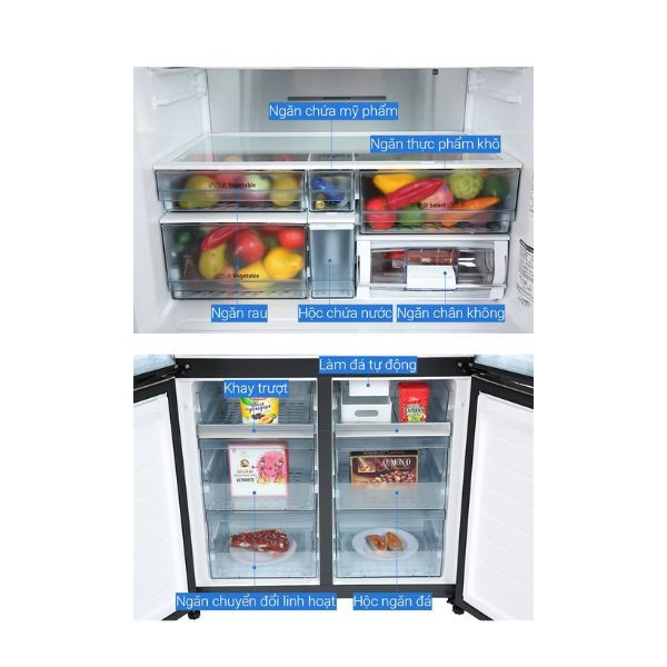 | Tiện ích | Đệm cửa chống mốc Ngăn đựng mỹ phẩm Khoá trẻ em Chế độ cấp đông nhanh Bảng điều khiển cảm ứng bên ngoài cửa tủ Bình chứa nước với bộ lọc Chuông báo khi quên đóng cửa Hộp đá xoay |
