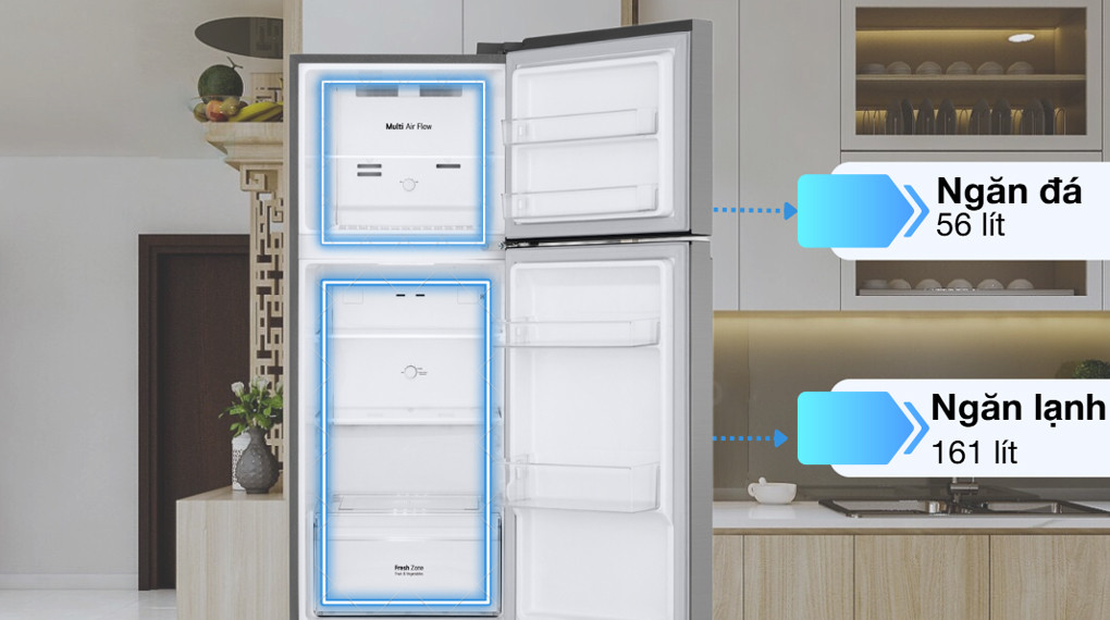 Với sự kết hợp giữa thiết kế sang trọng và công nghệ làm lạnh đa chiều Multi Air Flow giúp bảo quản thực phẩm tốt hơn, tủ lạnh LG 217 lít LTB21SVMD là lựa chọn hoàn hảo cho những gia đình nhỏ muốn có một thiết bị lưu trữ thực phẩm thông minh, tiện lợi và an toàn.
